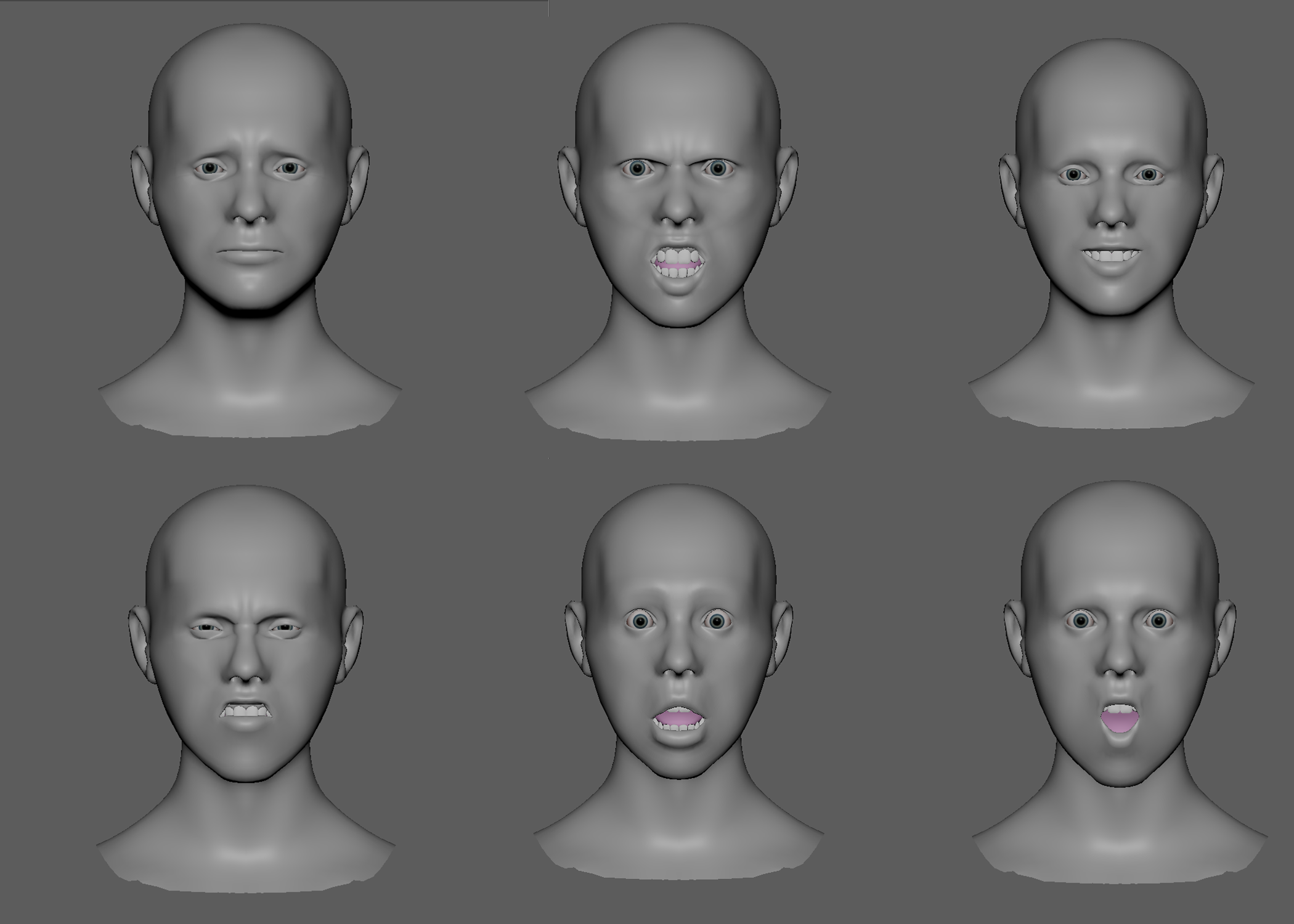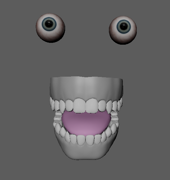 I added some basic mouth meshes I sculpted in ZBrush. Just the presence of teeth is very important to the readability of emotional performance, and the tongue will add extra dynamism to lip sync if I have time to flesh it out that far.
