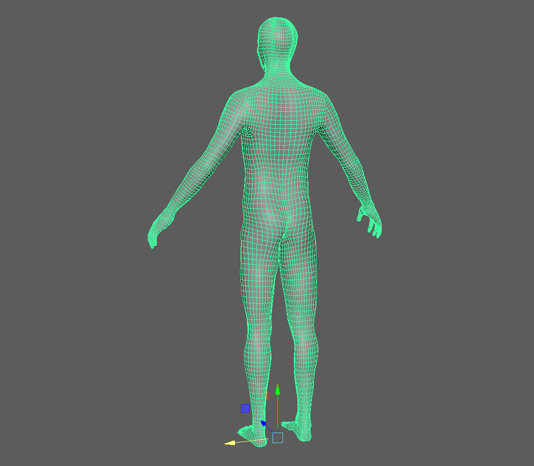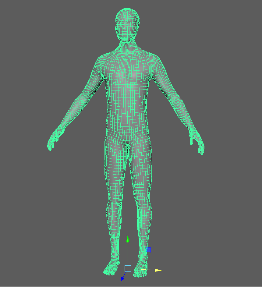 This character is designed to be as standardized as possible. I want to be able to take much of the work for this character like weights, animation, topology, and build tools to significantly cut the work for humanoid character with personality. The human is the canonical 8 heads tall, and has just enough muscle in keys areas that I can experiment with some advanced deformation for real time.