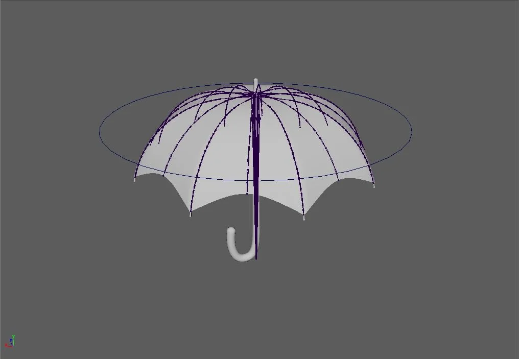 Maya umbrella rig with X-ray joints. Each canopy section gets a chain, as well as each major rib.