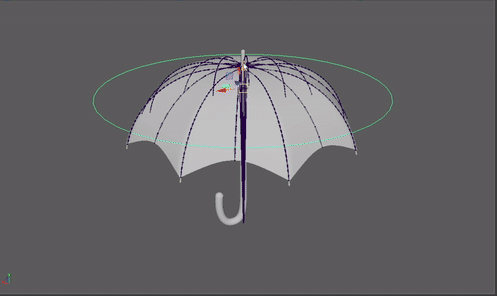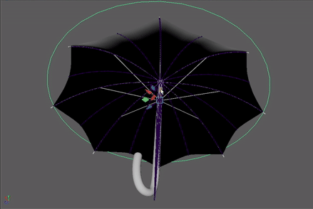 For the umbrella I knew I wanted to have it animate so that the people holding them could make them collapse in rhythm with the music. This required a study of how the mechanism of an umbrella actually works. If you look closely, there’s a moment when the ring has been pushed to the top where the ribs (the supporting metal rods) are at their maximum length before bending to create the iconic shape. I wanted the umbrella to reach that maximum length moment right on the beat and then settle into the bend retraction. In order to get this whole motion to flow correctly, it was going to take a tedious amount of setting up with joint chains and set driven keys in Maya.